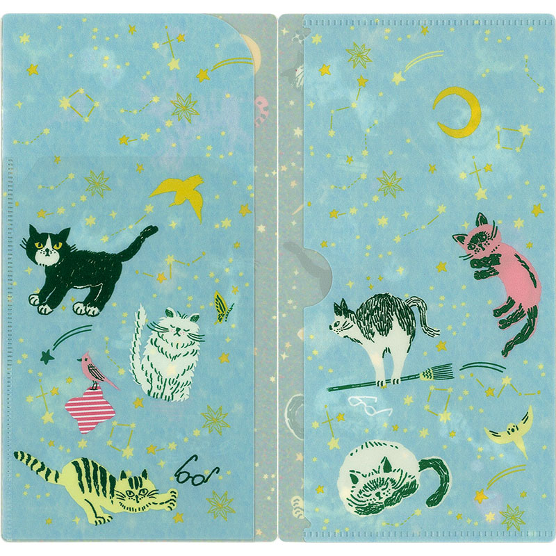 抗菌マスクケース(3ポケットタイプ)ねこと星